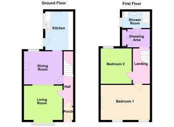 The accommodation comprises to the ground floor a porch, hall with staircase leading to the first floor, living room, dining room and kitchen with door leading to rear garden. To the first floor you will find two bedrooms, dressing area and a shower room. Externally to the front of the property there is a small court yard with steps leading to the front door. To the rear of the property there are steps leading to an enclosed garden.