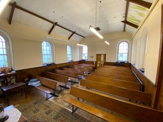Internally, the chapel comprises the entrance porch located over the western elevation, which provides access directly onto the main naïve and vestry area. The subject premises also extends further to the rear in the form of an annex building, which appears to accommodates an additional community hall, comprising a small kitchen and former congregation room. The community hall also benefits from a boiler room and external w.c. facilities.